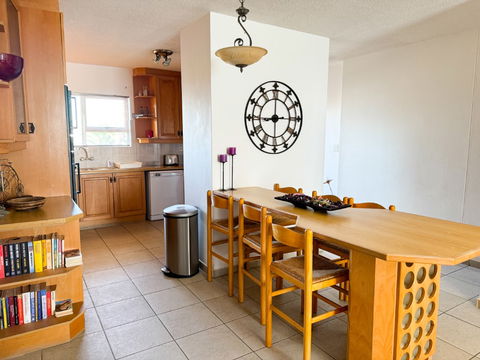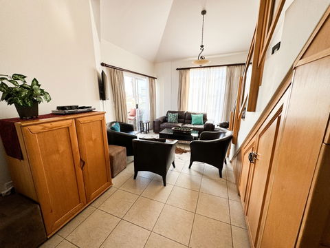 Welcome to your ideal coastal getaway! This spacious 3-bedroom, 2.5-bathroom duplex apartment offers the perfect blend of comfort and convenience. Located in the town centre, it’s just a short walk from the beach, making it ideal for families, friends, or couples eager to explore Swakopmund’s historic charm and vibrant surroundings. Whether you’re here to soak up the seaside atmosphere, enjoy local cafés, or discover cultural landmarks, this apartment places you right where the action is — while still offering a peaceful and welcoming retreat.