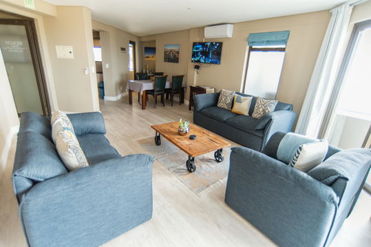 The apartment features a comfortable living area, a Smart TV with Netflix television and free wifi, a fully equipped kitchen with its own oven for travelers who wish to prepare a home cooked meal. Guests can make use of the Hotels restaurant and laundry services but this will be at your own cost. The Hotel also has a rooftop swimming pool area with the most beautiful views over the Atlantic Ocean and Namib Desert. Free Parking is available on the parking area next to the Hotel no garage or basement parking available