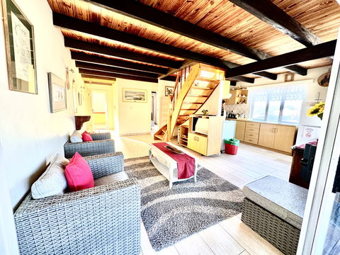 Enjoy your holiday in this comfortable 2 bedroom duplex apartment situated right in the center of Swakopmund and near the beach. Only 150 metres from the Sea. 2 Bathrooms. Spacious living room, dining nook area, kitchen, small entertainment room with BBQ